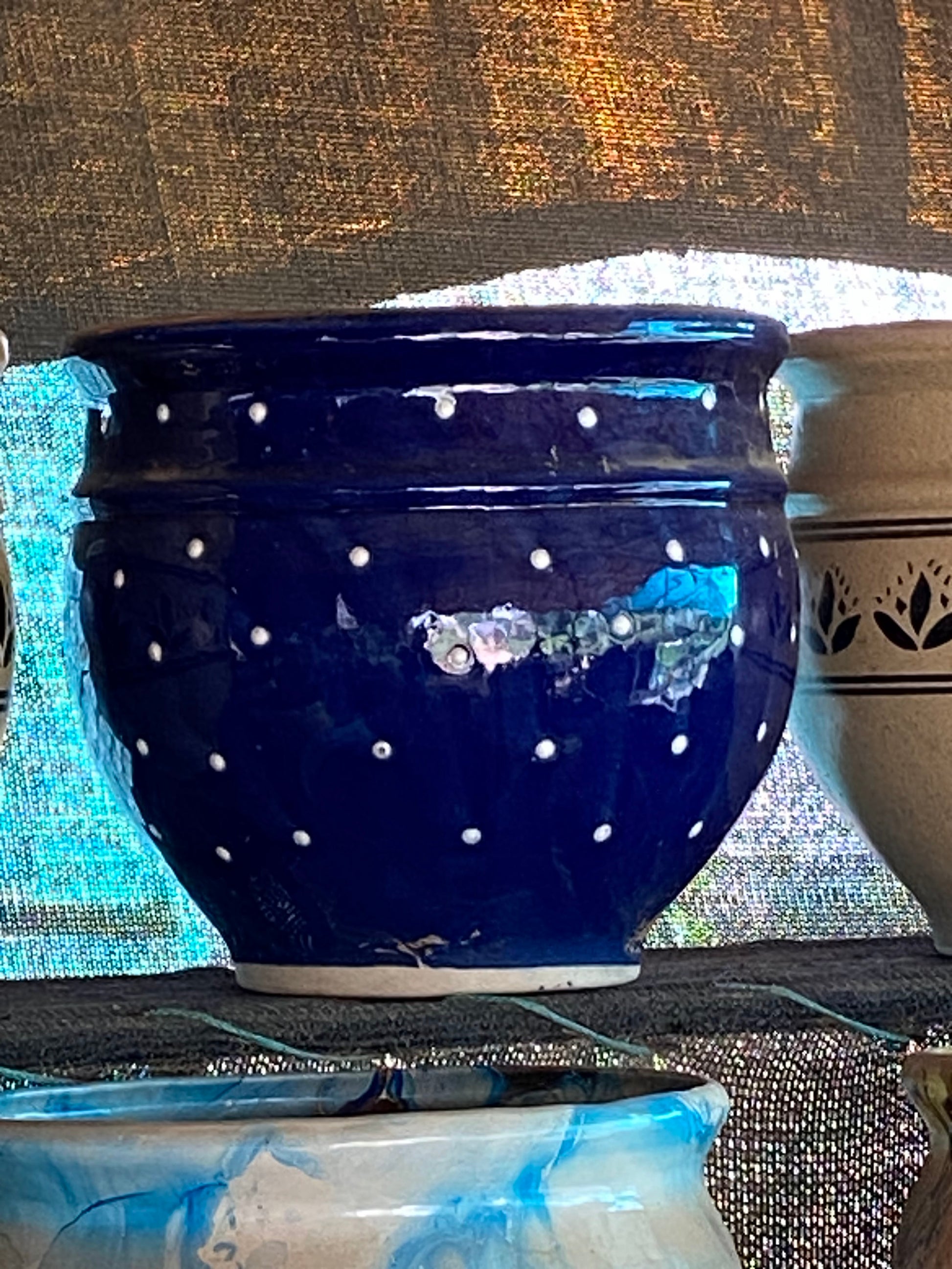 Navy Polka Dots Pattern Ceramic Pot - Medium (12 inches)